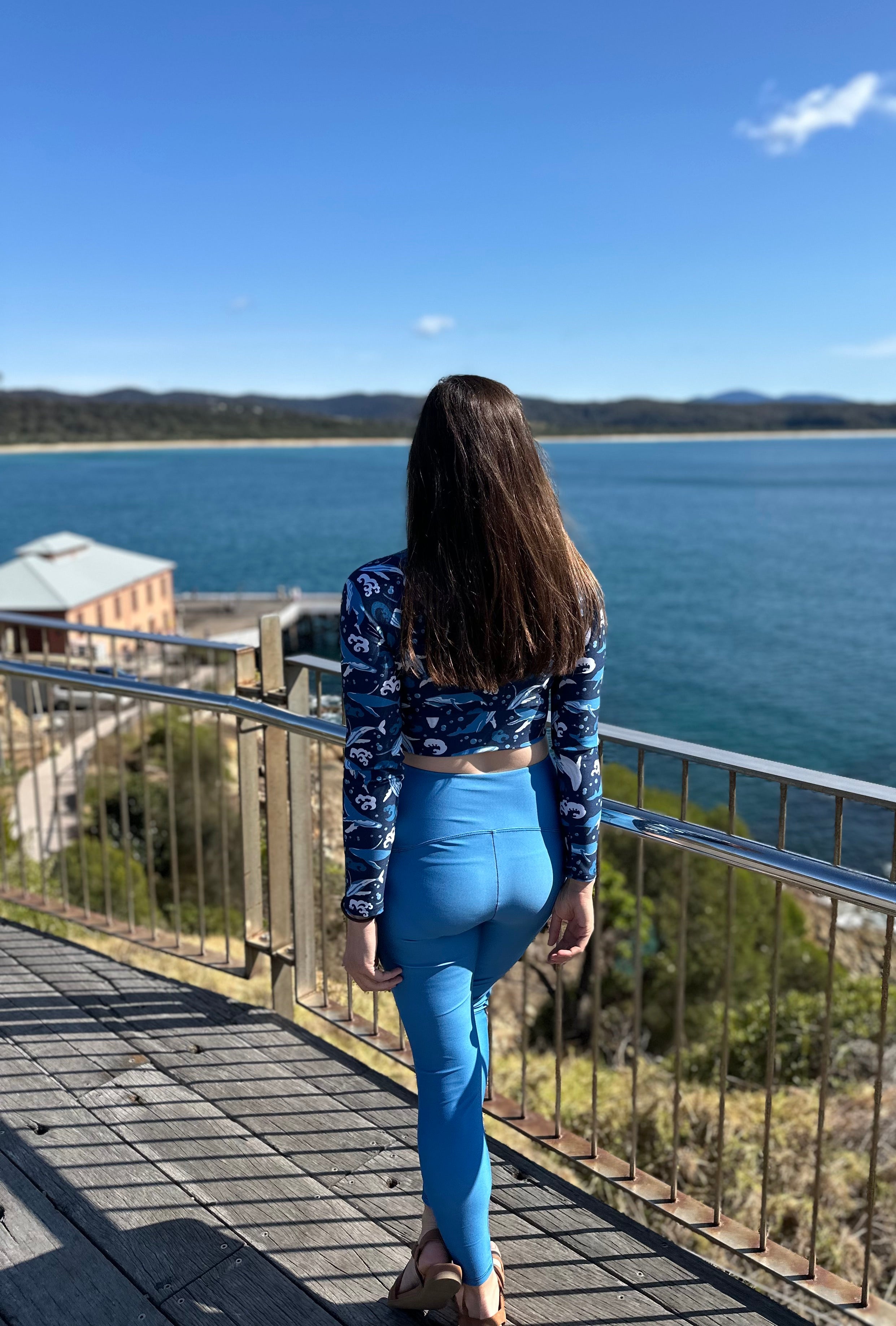 Humpback Whale Crossover-Waist Recycled Leggings With Pockets