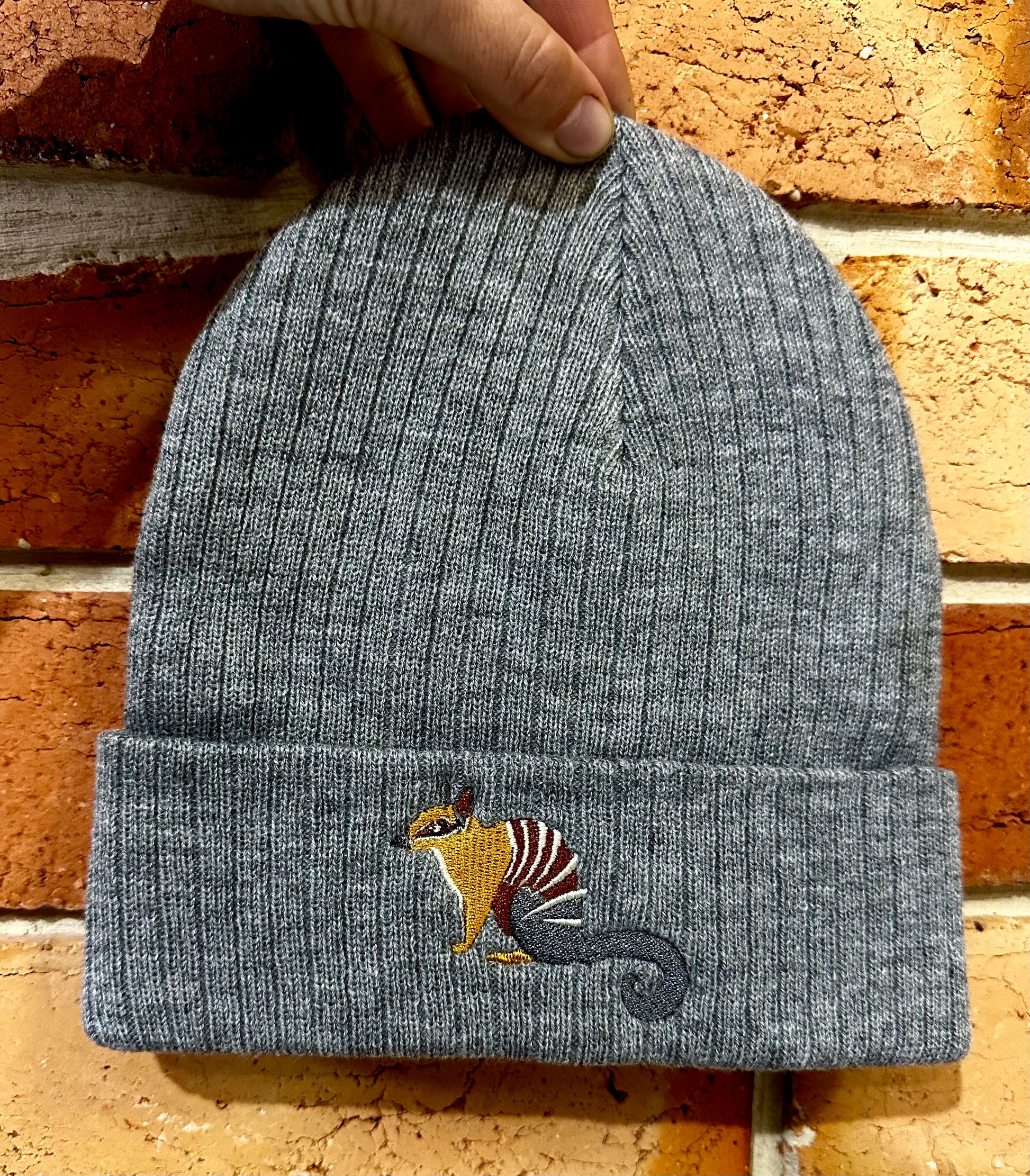 This numbat design was hand-drawn and embroidered on to these cozy beanies by me, and I am a super fan of our unique Aussie wildlife!